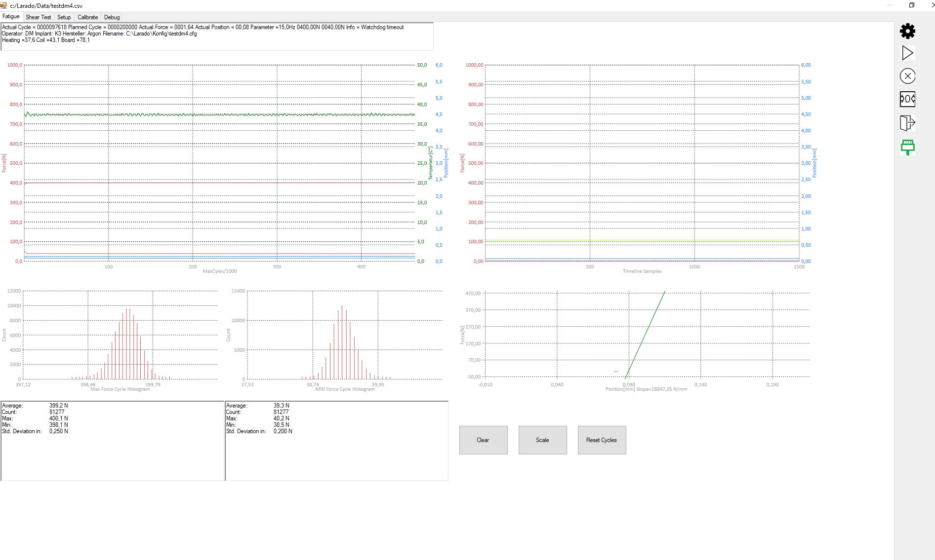 Die Testzeiten für Titan (15Hz trocken) und Keramik (2Hz nass) unterscheiden sich um den Faktor 7. Damit dauern Prüfungen mit Keramik diverse Wochen.